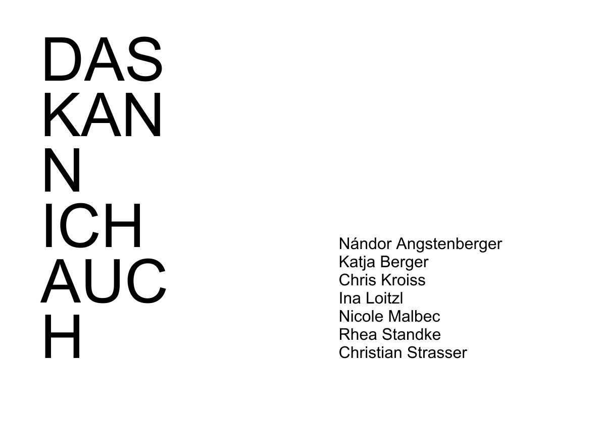 Ingmar Alge, Siegrun Appelt, Linus Barta, Katja Berger, Bella Angora, Ines Doujak, Rouven Dürr, Alfred Graf, Claudia Larcher, Christine Lederer, Constanze Müller, Karl Salzmann, Alexander Stark, Viktoria Tremmel und Uta Belina Waeger.